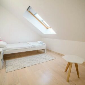 Lepe i čvrste drvene stepenice, obezbeđene metalnom i staklenom ogradom, vode Vas u gornji deo DANUBE PARK 3 apartmana. Ovaj deo apartmana je podeljen u dve celine – prostoriju sa jednim ležajem i prostrano kupatilo. Prirodno osvetljenje dopire preko krovnih prozora. To Vam omogućava da posmatrate novosadsko noćno nebo dok uživate u toploj kupki u kadi. DANUBE PARK 3 poseduje Wi-Fi konekciju, kao i posebno parking mesto za Vaš automobil.